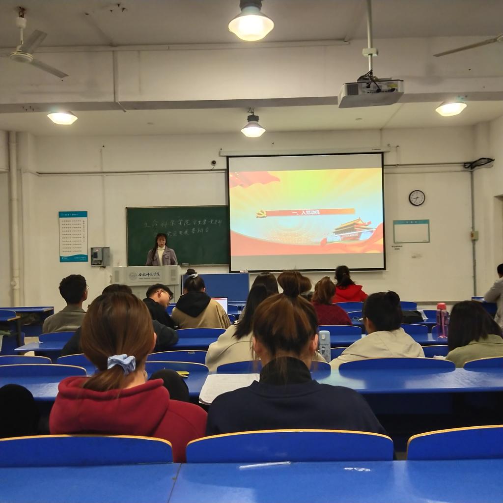 本网讯 11月12日,生命科学学院三个学生党支部分别在行知楼1502、逸夫楼A101、逸夫楼A109教室举行学生党员发展对象答辩会。生命科学学院党委书记郭桃芬、党委委员孙娴以及各党支部书记、党员教师担任答辩老师。