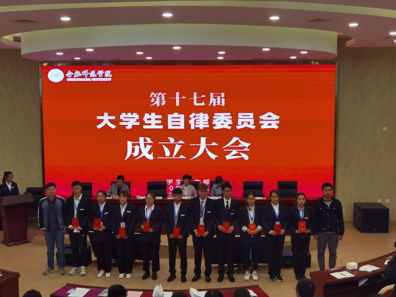 第十七届大学生自律委员会宋珂、裴春晓和赵佳乐三位同学代表发言。他们结合自身经历,分享了自己进入大学生自律委员会以来的感受和收获,并希望同全体成员一起牢记使命,恪守学生本分,将自律会建设得越来越好。