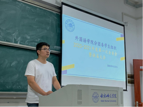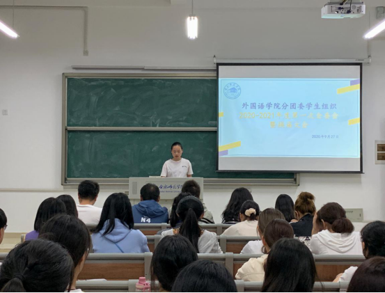本网讯 10月27日,外国语学院学生组织2020-2021年度第一次全委会暨换届大会在博学楼A106教室举行。参与本次会议的有外国语学院分团委书记朱儒进、分团委学生组织各部门负责人以及新任工作人员们。