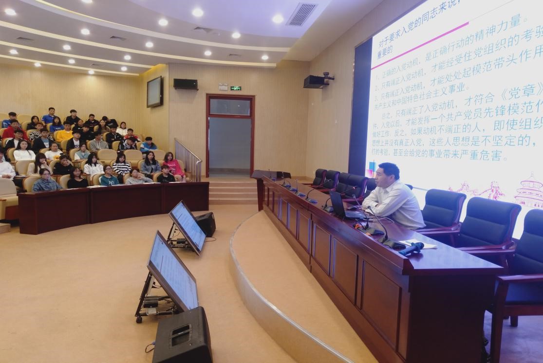 9月23日上午,体育科学学院党总支书记杜文龙首先对新生到来表示欢迎,接着以“端正入党动机,以实际行动争取早日入党”为主题,结合今年的疫情防控和防洪抗汛,引导同学们提升思想觉悟,培养爱国情操,扣好人生的第一粒扣子,认真学习、苦练本领,展现合师体育人的精神风貌,争当德才兼备的新时代大学生,做合格的社会主义建设者和接班人。