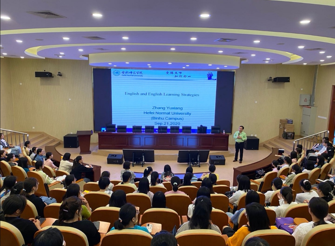 本网讯 为帮助2020级新生尽快适应大学生活,更好融入专业课程学习,9月21日上午,外国语学院在滨湖校区学术报告厅开展新生入学教育,学院硕士生导师、教授张宇翔为2020级新生作专题讲座,学院全体新生聆听此次讲座。