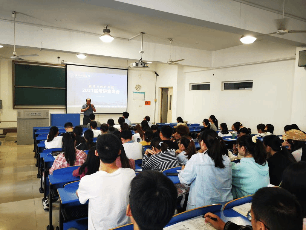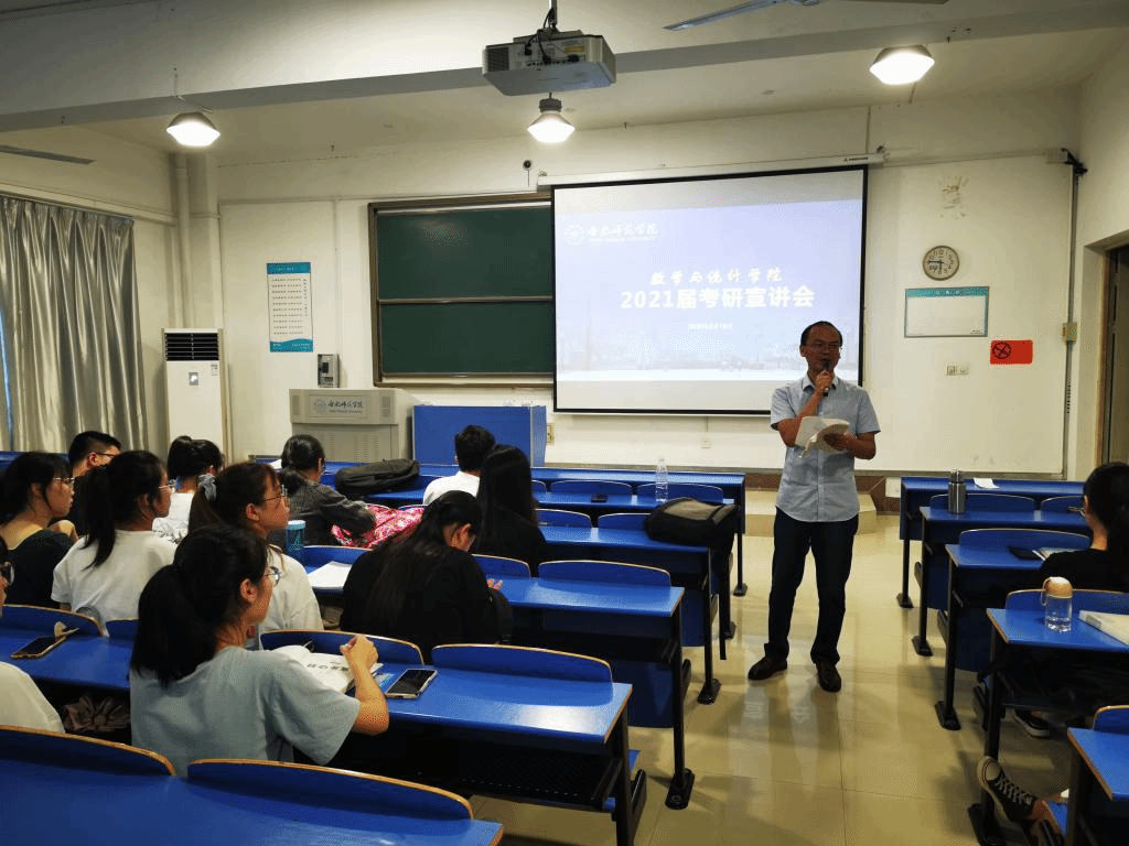 本网讯 为进一步营造优良学风,及时掌握招考信息、加强考研针对性指导,9月18日下午,数学与统计学院在逸夫楼A205教室召开了2021届学生考研宣讲会,数学与统计学院院长王家正,副教授唐永生、周辉,辅导员周倩以及2021届毕业班学生参加了此次宣讲会,同时邀请了安徽工业大学数理科学与工程学院副院长杨二光、李文喜,系主任杨刘来校开展招生宣讲。