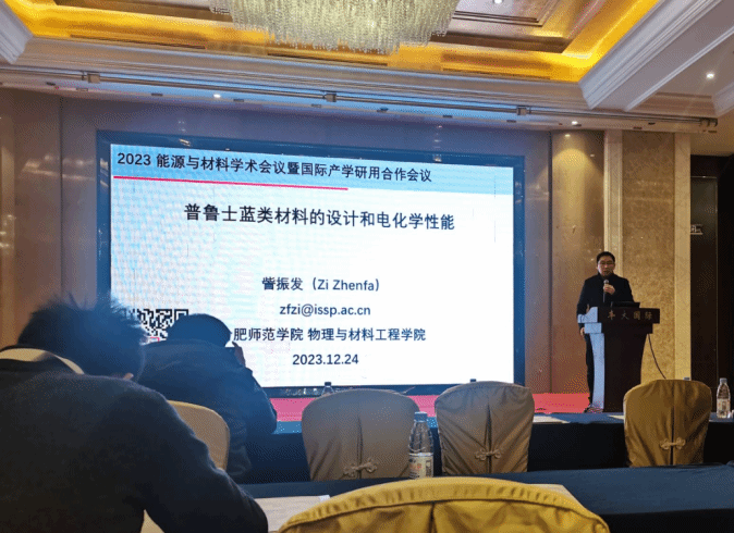 大会基于“双碳”目标引领下,储能产业逐步成长为明星产业的背景下,以“能源与材料化学”为主题。大会上,来自世界及全国高校和产业能源与材料化学领域的专家学者介绍了先进能源储能材料、储能器件、材料化学等方面的最新研究成果。訾振发教授作为第五分会场主持人主持了“钠离子电池”的学术报告,同时,訾振发教授在会上就《普鲁士蓝类材料的设计和电化学性能》主题做了详细的汇报。必赢官网余海博士在大会的第七分会场就《低温策略下一次合成具有增强的光电化学性能和光催化活性的N/C/S-TiO2》主题展开报告。其他参会人员结合自己的研究方向与国内外同行进行了广泛交流和探讨。同时必赢官网也将学院最新的学术成果以展报形式呈现在大会的第三分会场,现场引来不少同行学者的观摩,效果良好。