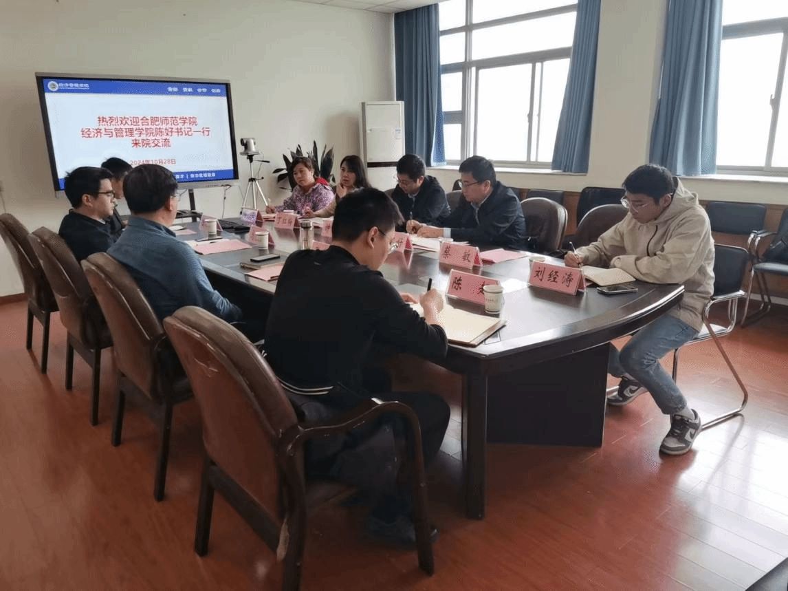 陈好代表合师经管院介绍了学院的基本情况、师资队伍、专业结构及人才培养等,并就学院下一步发展进行了深入交流。钟玉文就学科点申报、专业转型、教师发展以及新进博士培育等方面取经学习。会上,丁红梅、郭云和刘经涛等老师关于调研主题的相关事项进行了深入交流,在开展工作的机制成效方面充分交流了经验。