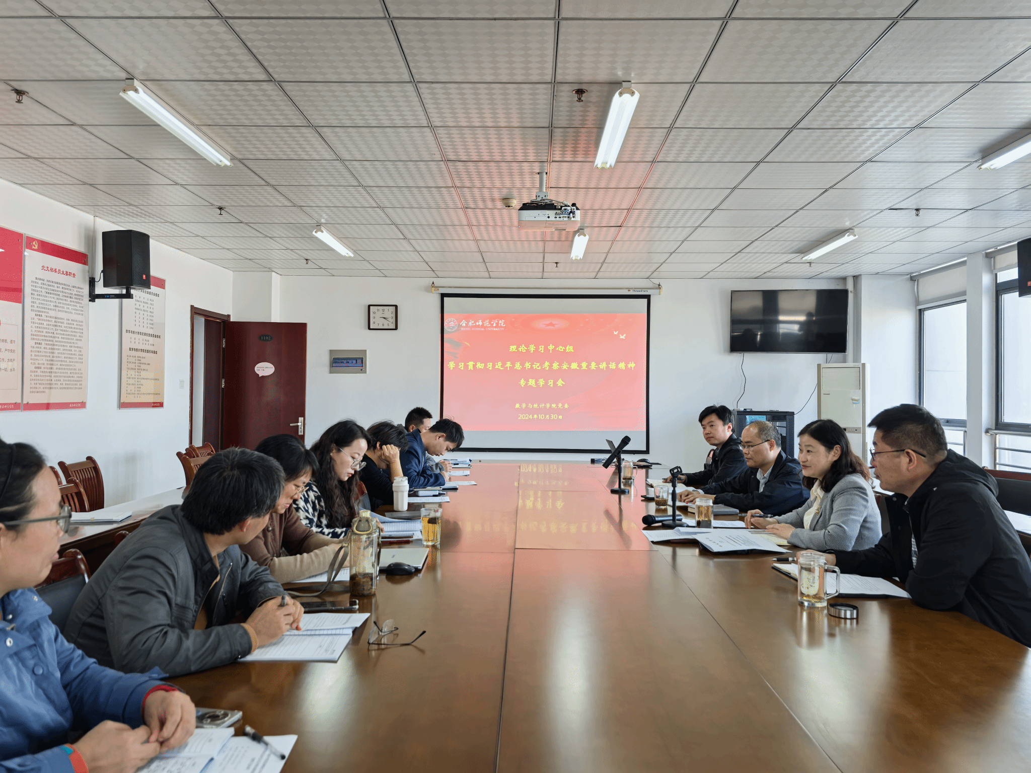 在当天下午召开的学院教职工大会上,全体教职工集中收看了习近平总书记考察安徽的央视新闻报道。