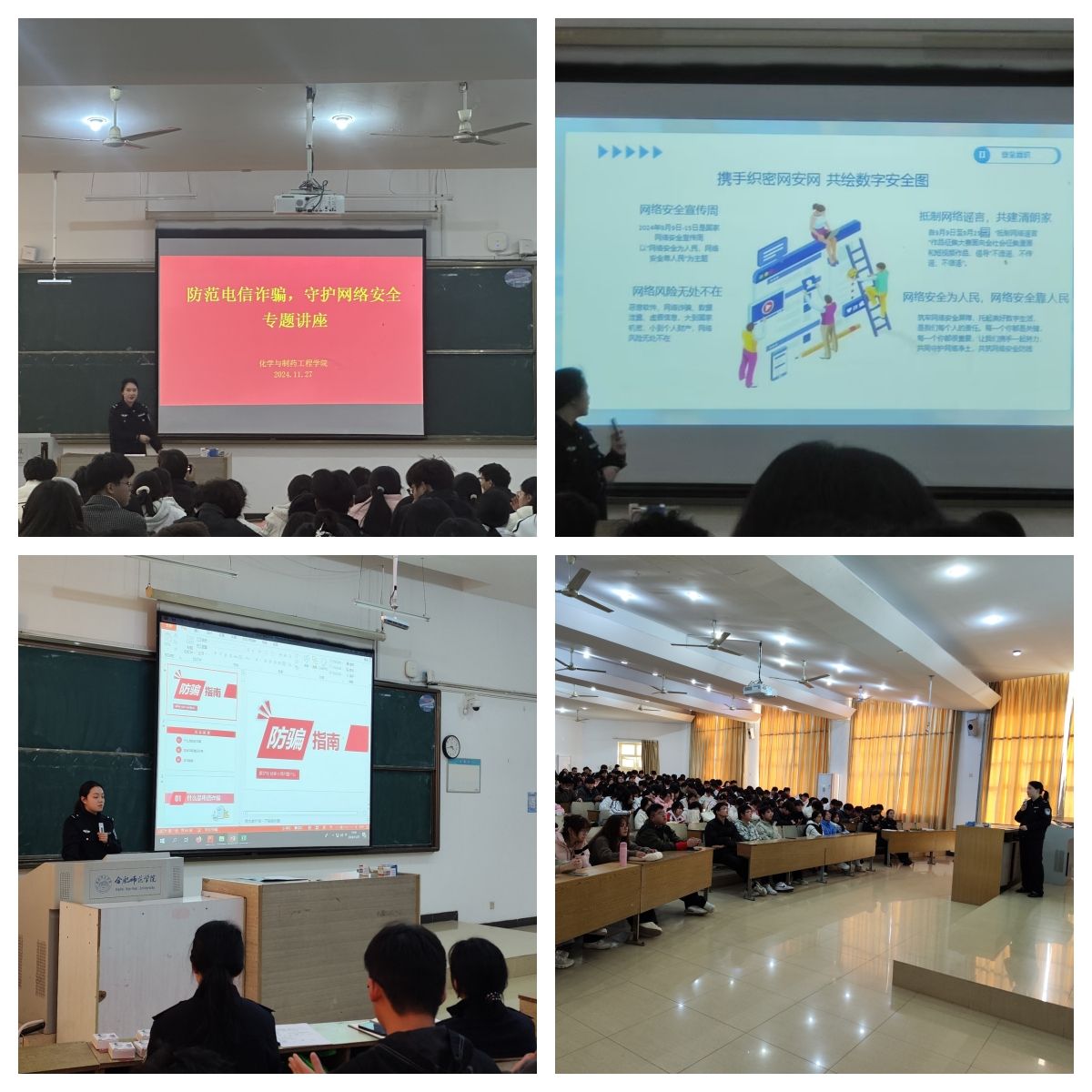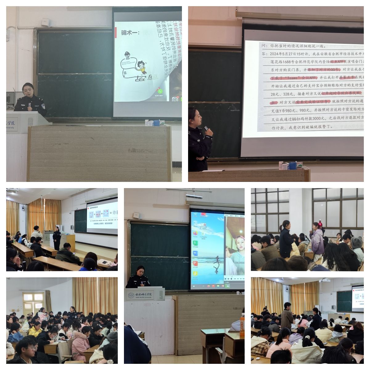 为进一步筑牢学生防范电信诈骗意识,加强学生识骗防骗能力,规范使用网络,守护个人信息安全。化学与制药工程学院联合校保卫处、合肥市公安局经开分局于11月27日下午在博约楼101阶梯教室开展了防范电信诈骗,守护网络安全主题教育活动。必赢官网新生辅导员、新生学业导师及300余名学子参与了本次主题教育活动。