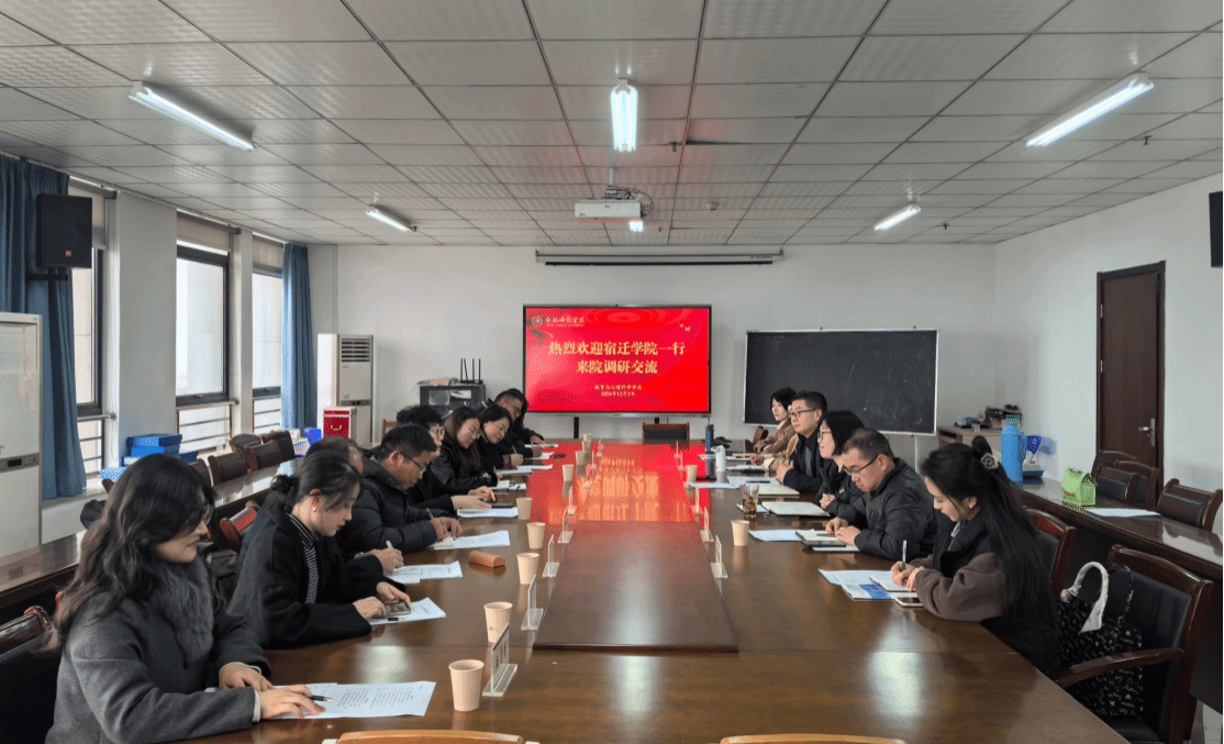 12月3日下午,宿迁学院教师教育学院院长王红岩一行9人来必赢官网开展调研交流。教育与心理科学学院党委书记董萍、副院长胡连峰、副院长胡哲及3位系主任参加调研会,会议由党委书记董萍主持。