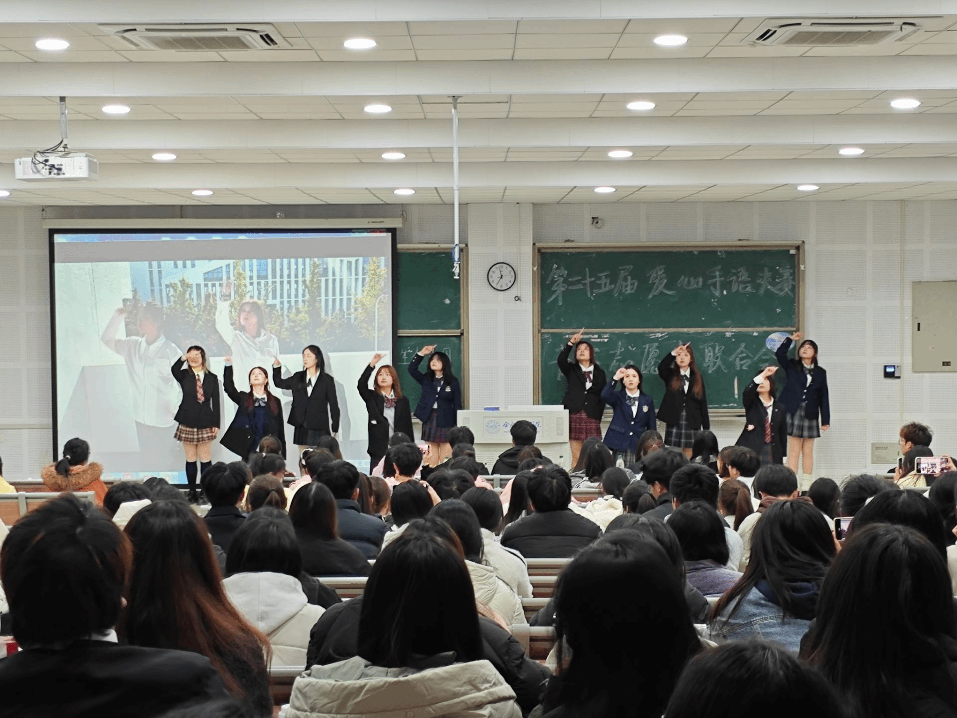 11月29日晚,第二十五届爱心手语操决赛顺利举行,经过初赛的精彩角逐,晋级选手现场展示他们的手语作品及手语视频。选手们将音乐与手语完美结合,情感表达淋漓尽致,以整齐的动作和有条不紊的节奏赢得现场评委和观众的热烈掌声。评委团队依据参赛团队的动作流畅度和整齐度、团队形象、表演内容的创新独特性以及团队应变能力等,共评选出十支优秀队伍。