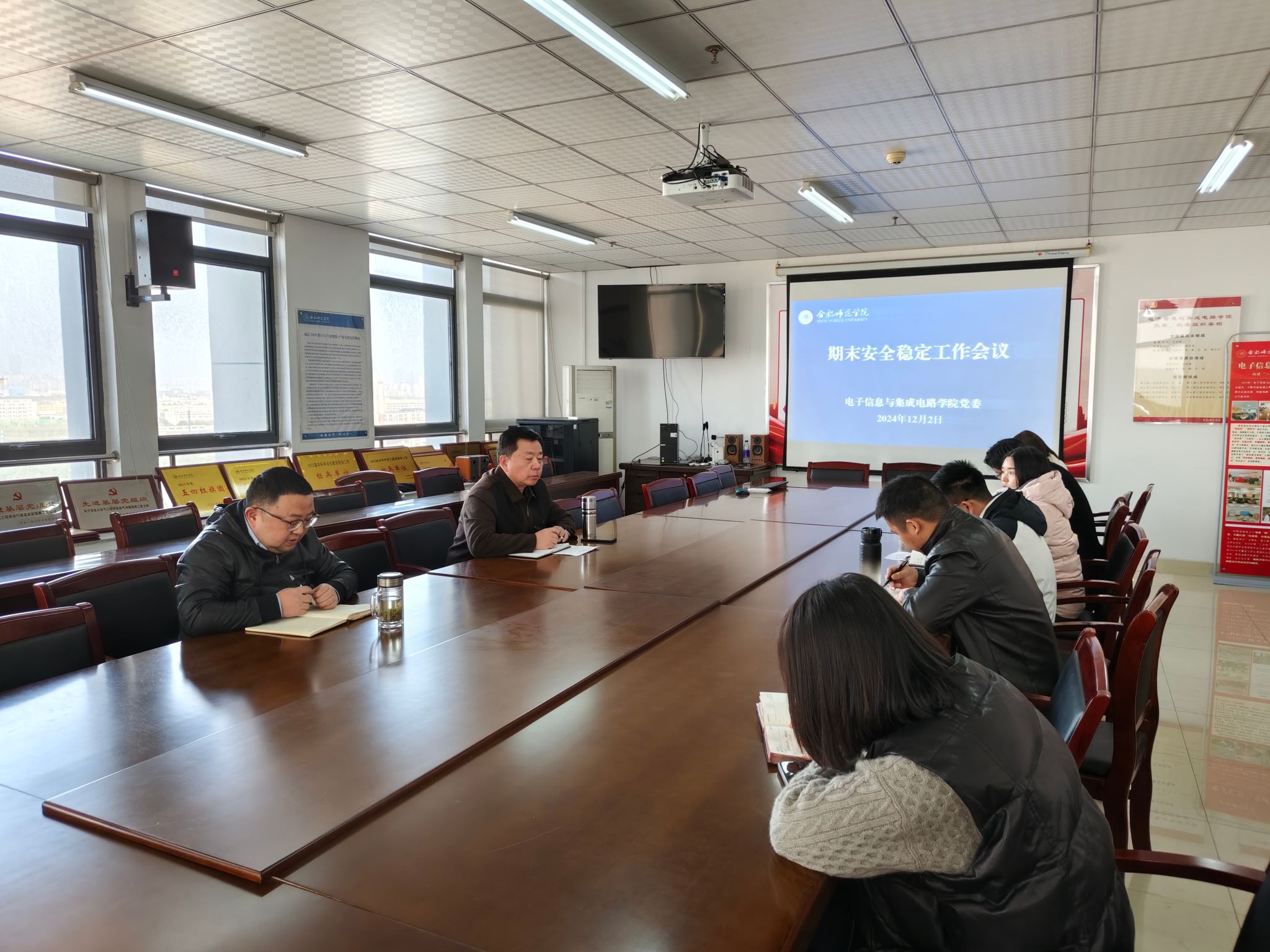12月2日下午,电子信息与集成电路学院党委在行知楼1210会议室召开学院期末学生工作专题会议,党委书记王东明、全体专兼职辅导员参加会议,会议由党委副书记、纪委书记胡石清主持。