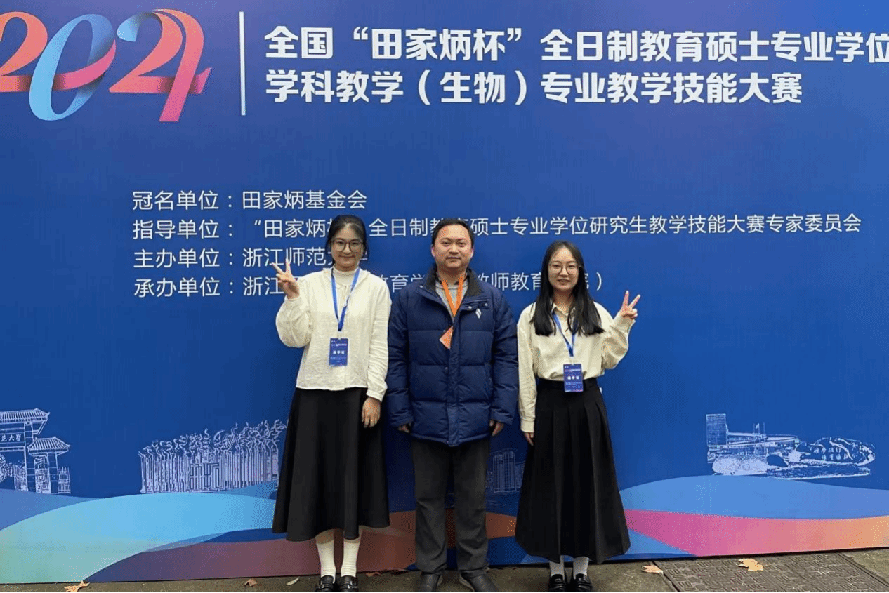 12月12日,2024年全国“田家炳杯”全日制教育硕士专业学位研究生学科教学(生物)专业教学技能大赛决赛在浙江金华圆满落幕。本届赛事由田家炳基金会冠名,浙江师范大学承办。经过激烈的角逐,生物与食品工程学院2023级学科教学(生物)研究生何文静荣获二等奖、马明玉荣获教学设计奖,指导老师陈金武荣获优秀指导教师奖。