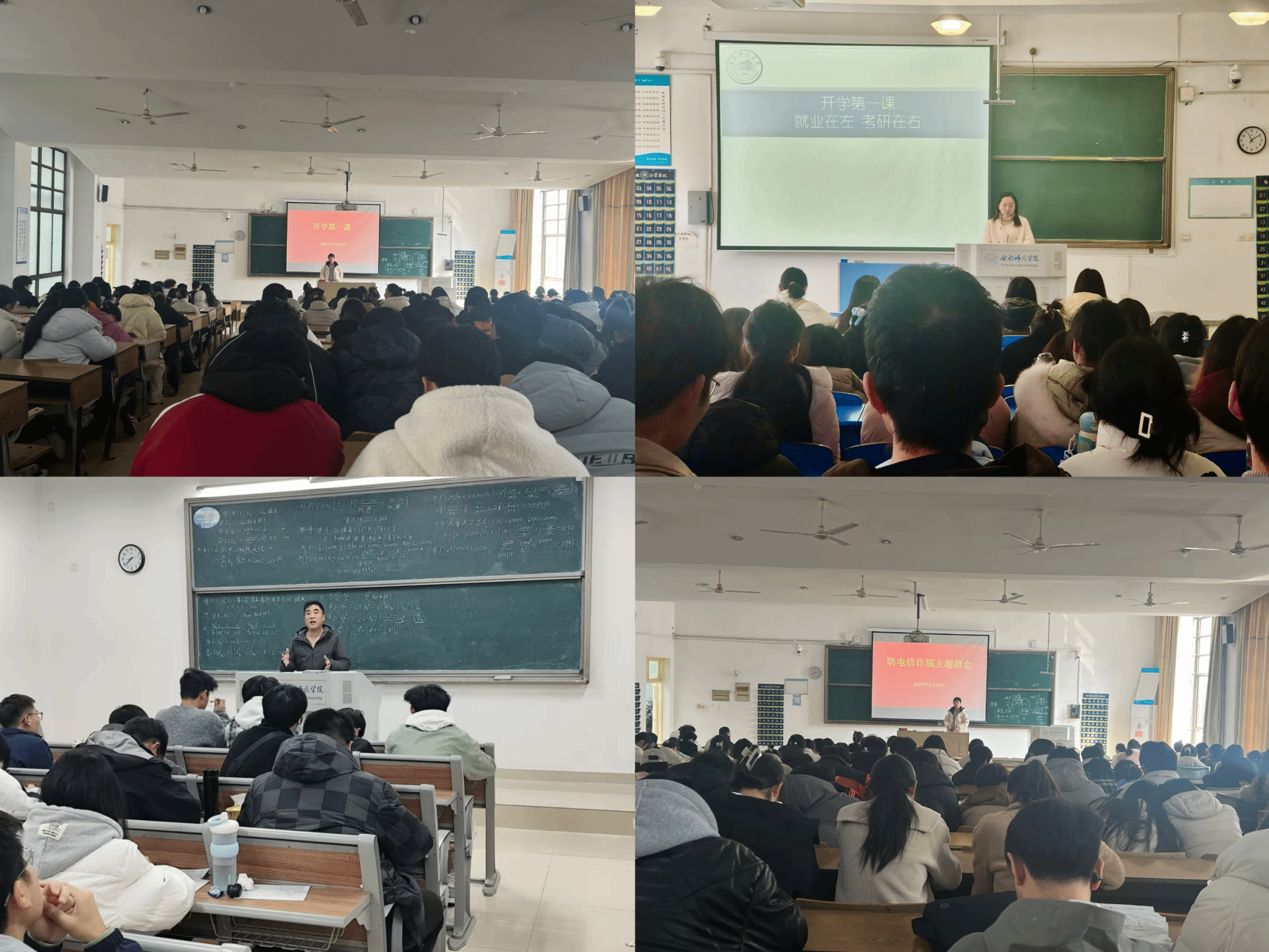 2月16日至19日,数学与统计学院各年级辅导员紧扣学生成长规律,分层次、分主题开展了丰富多彩的“开学第一课”主题班会。针对大一新生,以“安全筑基·规划启航”为主题,强调了校园安全的重要性,并引导学生制定合理的学习规划;对大二、大三学生,则以“学风建设·科创赋能”和“就业在左·考研在右”等为主题,分别就学风建设、科技创新以及职业规划等方面进行了深入指导;针对即将毕业的大四学生,则以“就业攻坚·职场扬帆”为主题,对就业政策、求职技巧以及职场心态等方面进行了详细讲解。