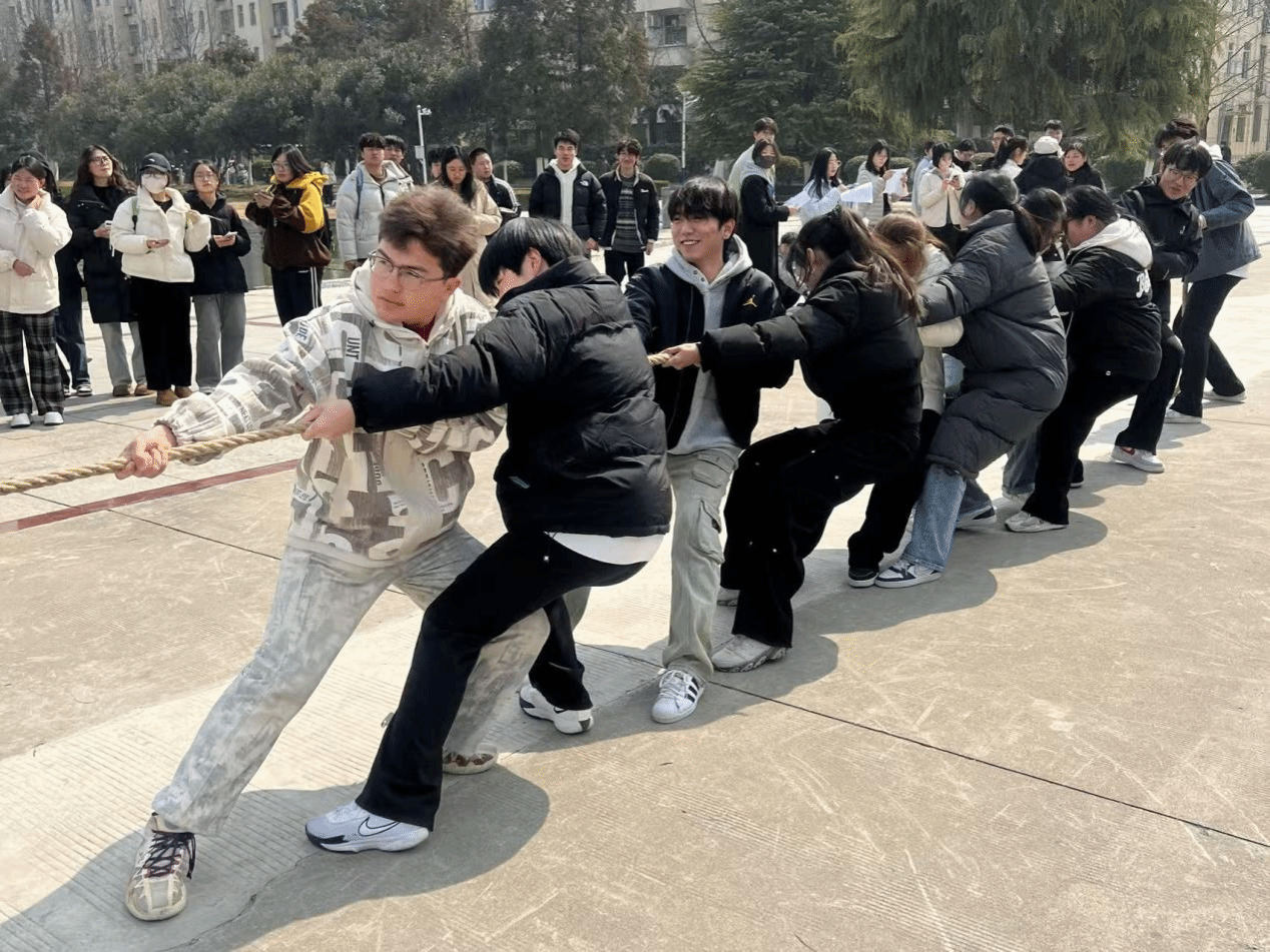 随着裁判一声哨响,比赛正式开始。现场气氛热烈,加油声、呐喊声此起彼伏。参赛队员们个个精神抖擞,斗志昂扬,他们紧握长绳,双脚蹬地,身体后倾,使出浑身解数,为团队荣誉而战。一根根粗壮的麻绳,在双方队员的拉扯下,绷得笔直,仿佛一条条蓄势待发的巨龙。经过多轮激烈角逐,2024级生物科学(师范)1班代表队凭借出色的团队协作和顽强的毅力,力压群雄,夺得本次比赛的冠军。
