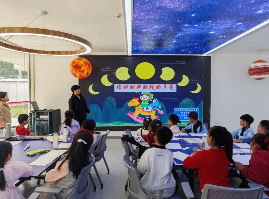 在随后的科普知识讲解环节,志愿者们利用制作的月相模型,深入浅出地介绍了月亮时胖时瘦的原因——月相变化的原理。从新月到满月,再从满月到残月,每一种月相背后都蕴含着天文学的奥秘,小观众们聚精会神,不时发出阵阵惊叹,心中的疑惑也随之一一解开。