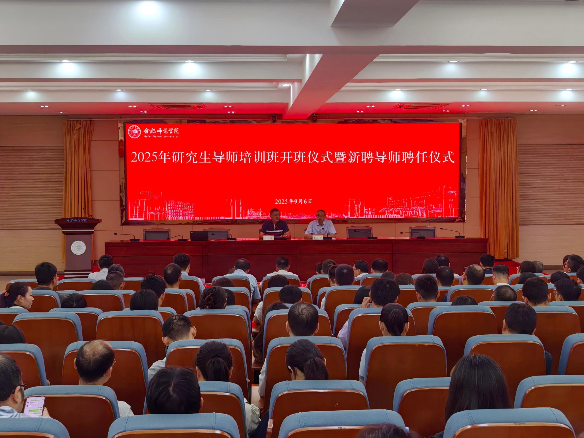 为进一步加强研究生导师队伍建设,提升研究生人才培养质量,学院于9月6日开始举办2025年研究生导师培训班,培训以线上线下相结合的形式开展。9月6日上午,学院在锦绣校区学术报告厅举行2025年研究生导师培训班开班仪式暨新聘导师聘任仪式。党委委员、副院长周端明出席会议并讲话,各研究生培养学院院长,全体新聘校内研究生导师,校外研究生导师代表,研究生处负责人以及相关工作人员参加会议,会议由研究生处处长董华泽主持。