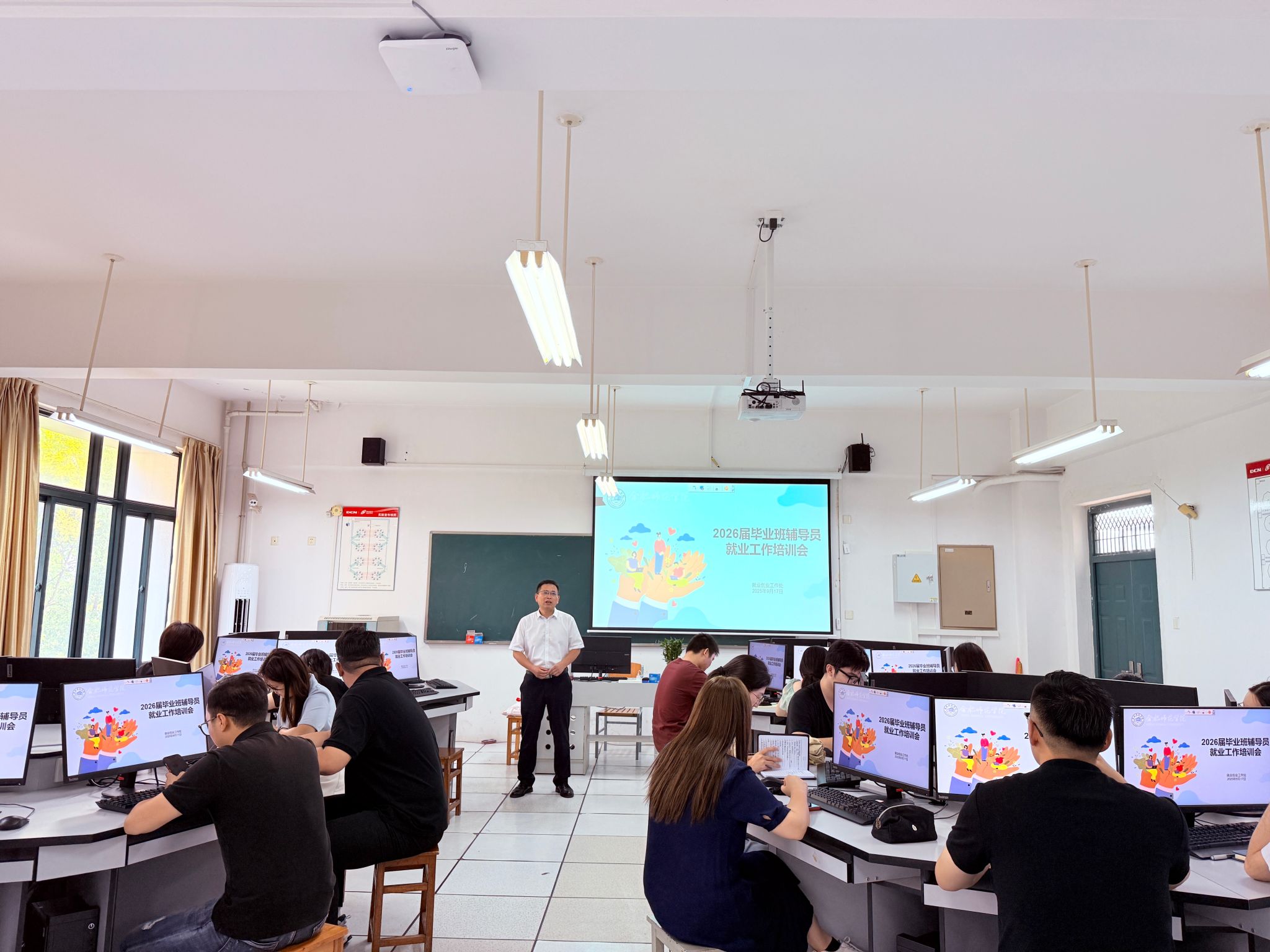 为全面提升就业服务工作质量,加强就业工作队伍的专业化、规范化建设,9月17日,就业创业工作处在锦绣校区躬行楼举办2026届毕业班辅导员就业工作专题培训会。各二级学院毕业班辅导员参与培训,培训会由就业创业工作处副处长张晖主持并作动员讲话。