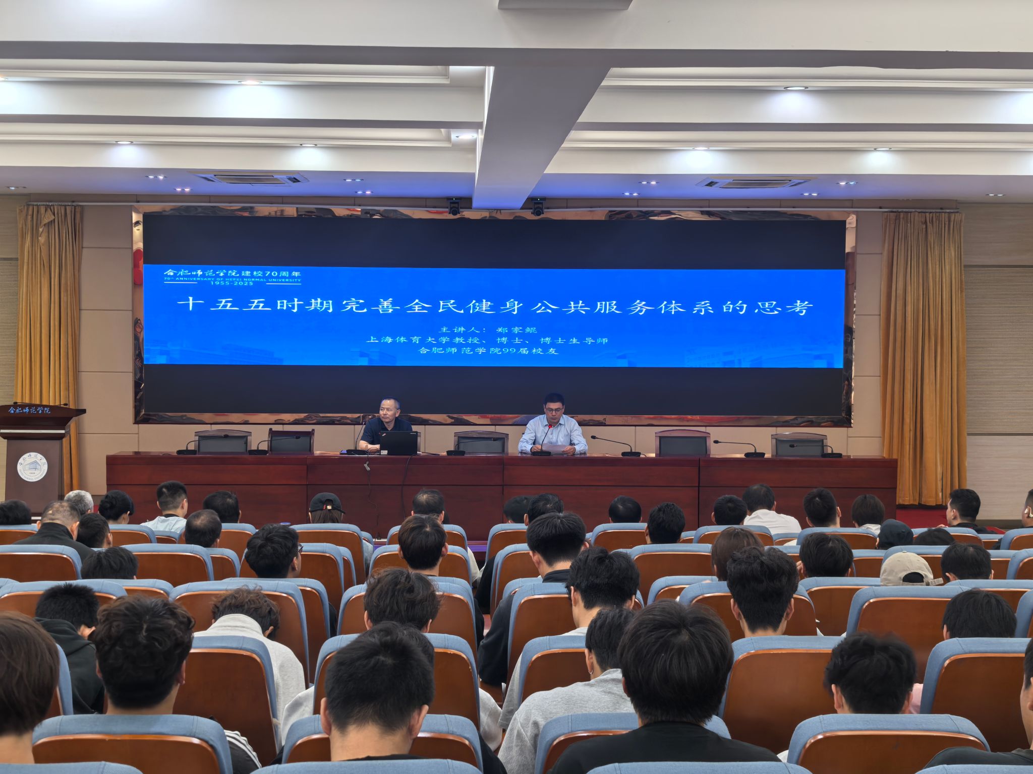 时值必赢线路检测中心建校70周年,校园内洋溢着喜庆与学术交融的浓厚氛围。9月24日下午,99届杰出校友、上海体育大学教授、博士生导师郑家鲲应邀重返母校,在锦绣校区学术报告厅为体育科学学院师生带来了一场题为“‘十五五’时期完善全民健身公共服务体系的思考” 的精彩学术报告。本次报告不仅是校庆系列学术活动的重要组成部分,也为师生提供了一次与前沿体育政策研究深度对话的宝贵机会。