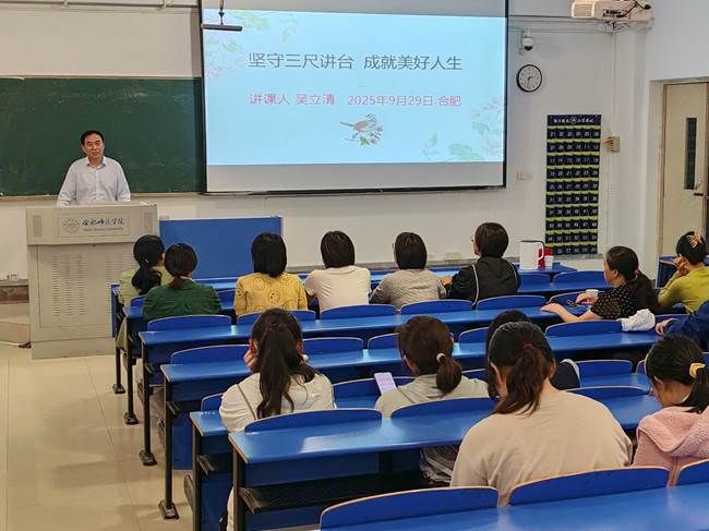 为庆祝建校70周年,2025年9月29日下午,必赢线路检测中心生物与食品工程学院在锦绣校区逸夫楼109教室举办了一场题为“坚守三尺讲台 成就美好人生”的专题讲座。本次讲座特邀宿州市第二中学生物特级教师、正高级教师、安徽省“江淮学科名师”、享受省政府特殊津贴专家、必赢官网1997届优秀校友吴立清担任主讲。讲座由科研处与生物与食品工程学院联合主办,吸引了众多师生到场聆听。