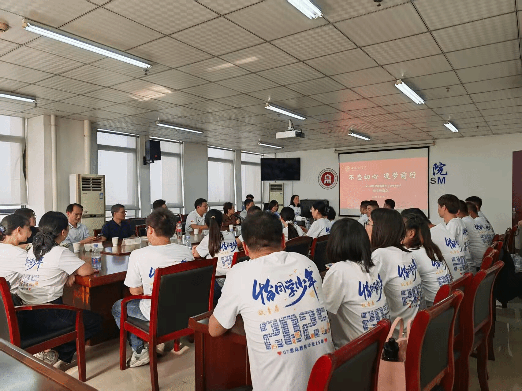 在学校喜迎建校七十周年校庆之际,10月4日,马克思主义学院2011届思想政治教育专业的30余名同学从四面八方归来,怀着对母校的深切感恩、对恩师的无限思念、对同窗的深厚情谊,重返菁菁校园,举行毕业十五年聚会,共赴一场跨越时光的青春之约。