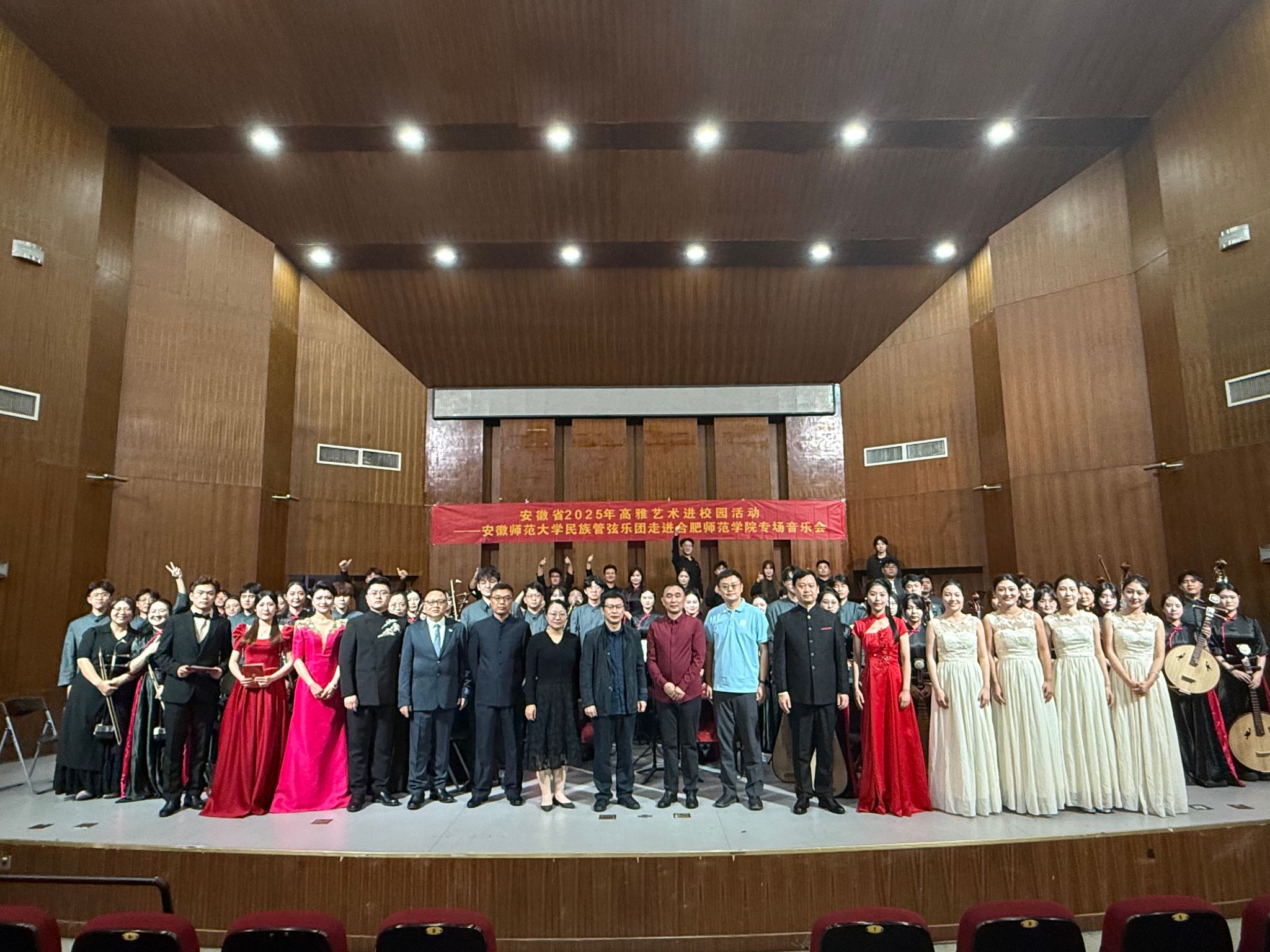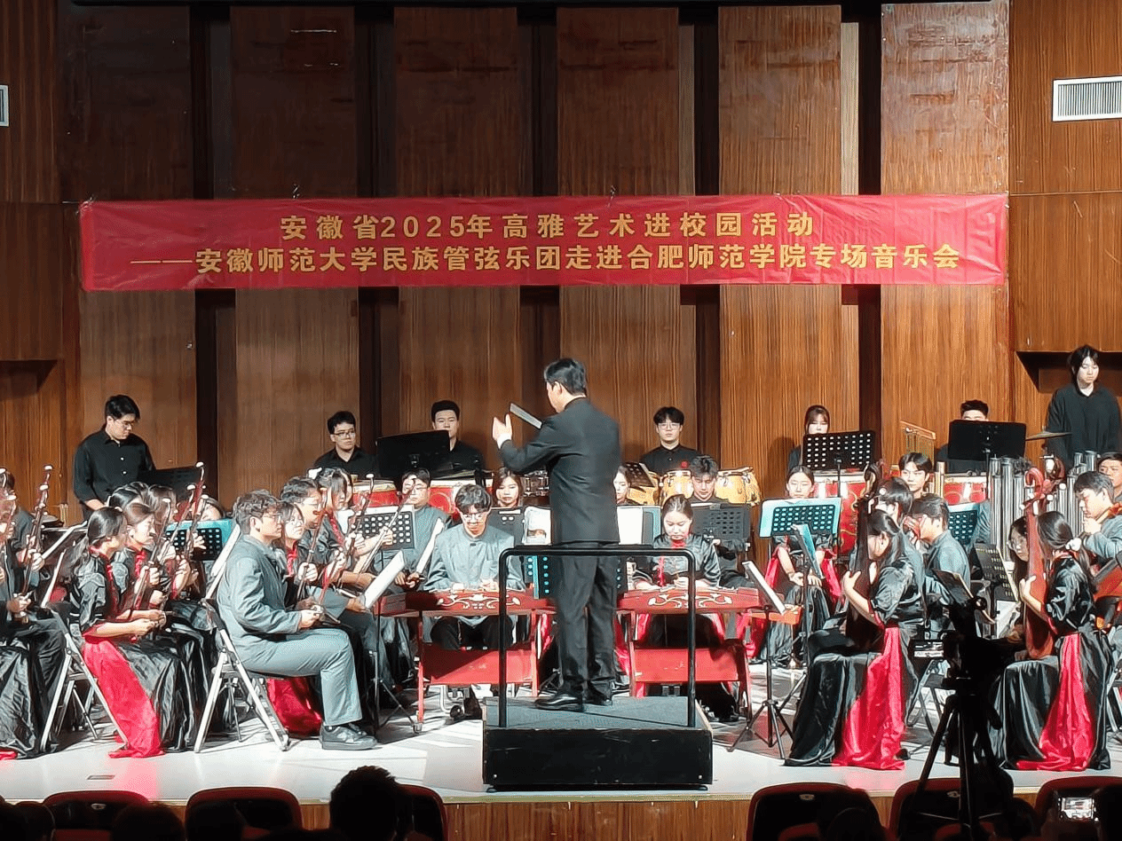 为深入贯彻习近平总书记“培育和践行社会主义核心价值观,弘扬中华优秀传统文化”的重要指示精神,10月14日晚,安徽省2025年“高雅艺术进校园”活动走进必赢官网,由安徽师范大学音乐学院民族管弦乐团带来的民族音乐专场演出在锦绣校区音乐厅精彩上演,院团委、音乐学院有关负责人及近300名师生现场观看演出。