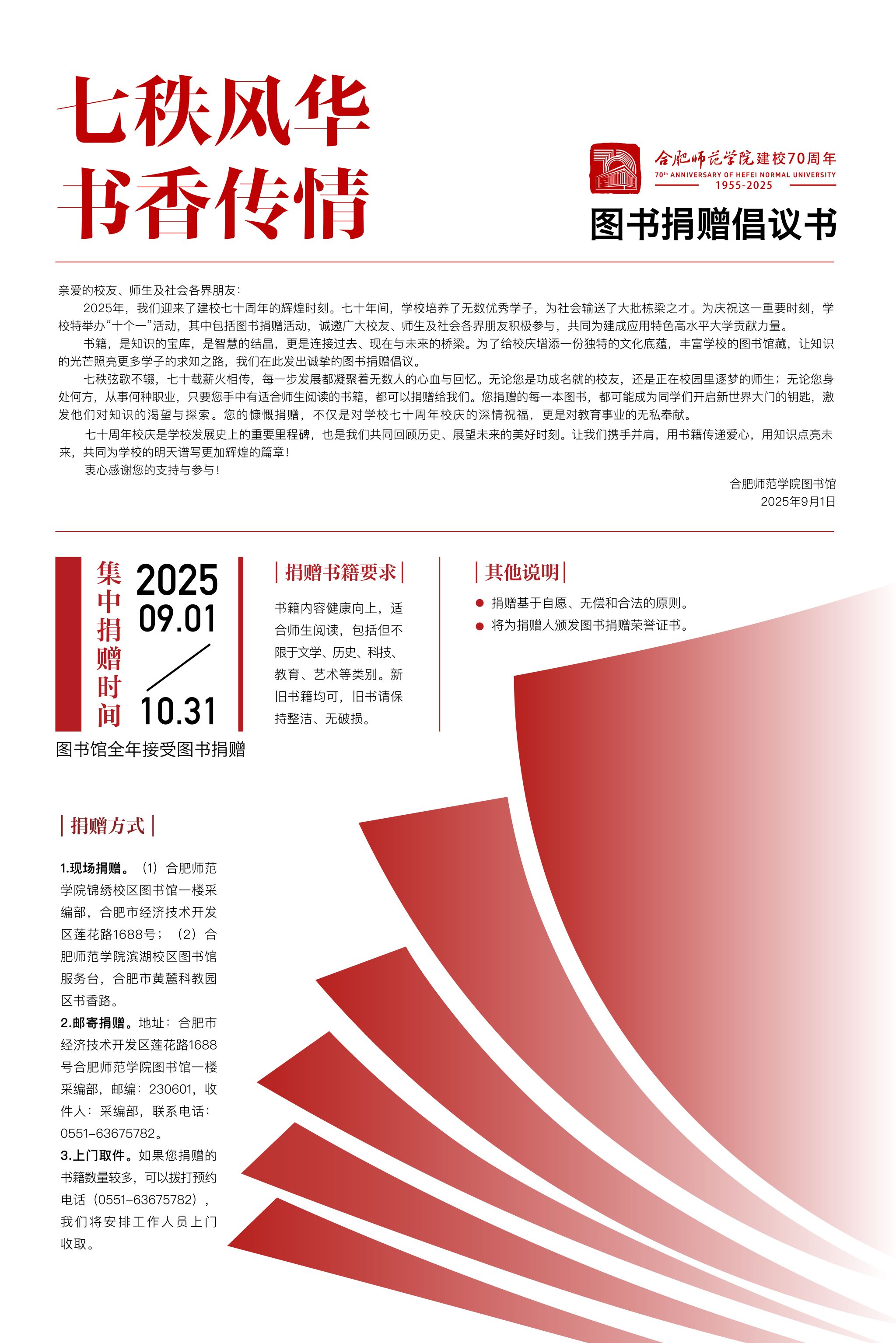 必赢线路检测中心建校70周年图书捐赠倡议书